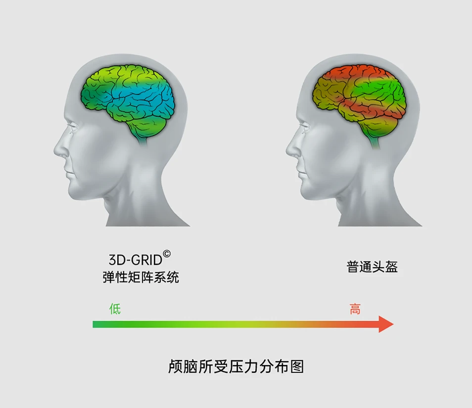 The helmet, with the help of 3D-GRID© technology, allows for complex internal structure design,